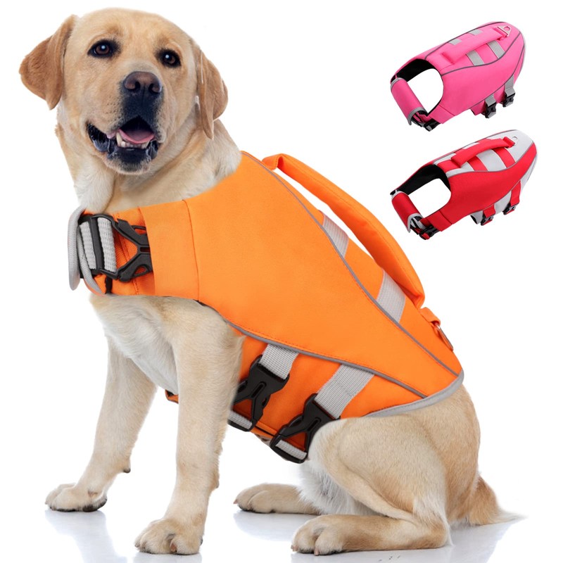 - SAFE DOG LIFE VEST WITH FIRST-AID RESCUE HANDLE - Wide nylon resuce handle at the pet life jacket's back can bear heavy weight and you can grab the handle and lift your pet quick and save your pet's life in emergency.