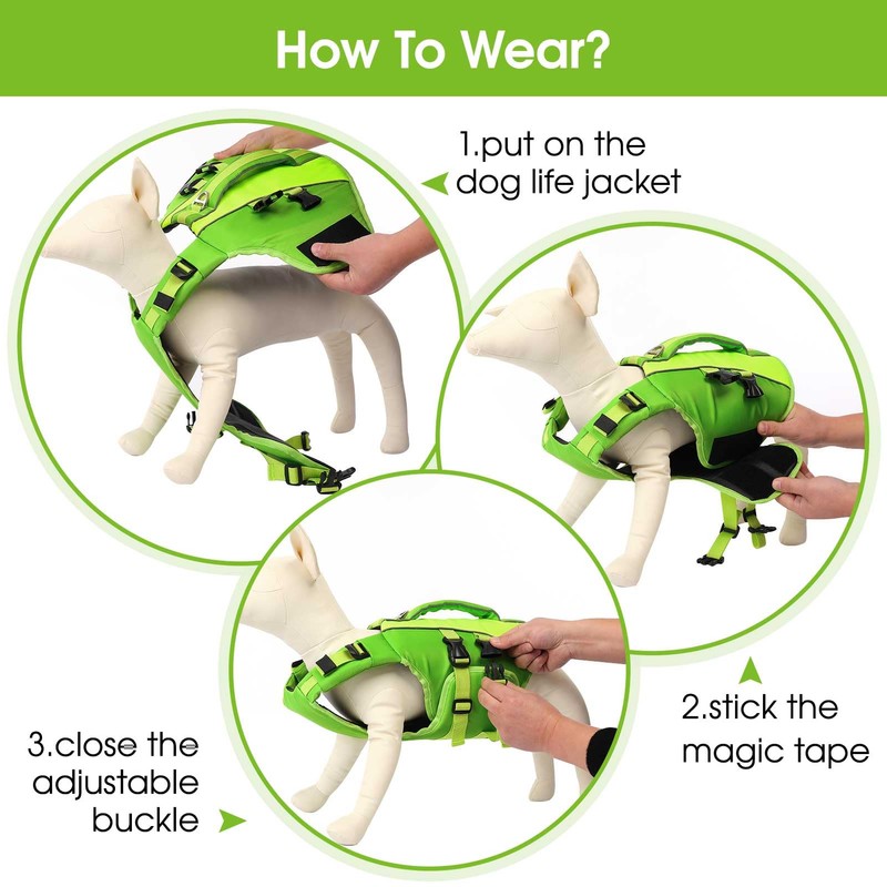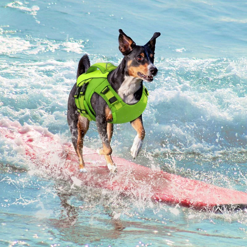 Queenmore Small Dog Life Jacket,Small Dog Life Vest for Swimming,Adjustable Reflective Dog Swimming Vest,High Buoyancy Dog Lifesaver,Pet Life Preserver(Green,S)