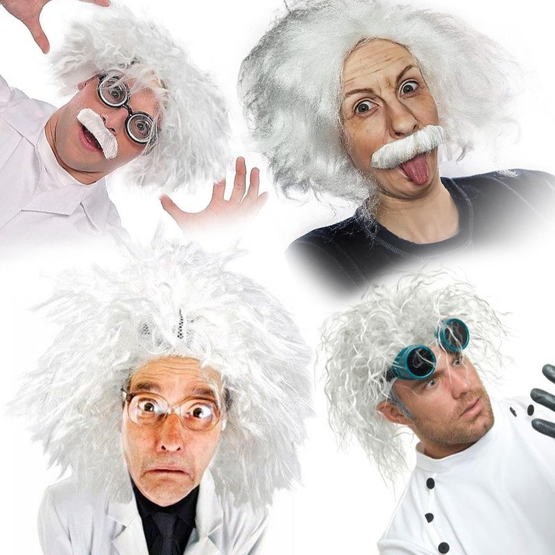 QUEENTAS White Wigs for Men Cosplay Wigs Synthetic Scientist Wig Scientist Physicist Costume