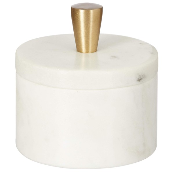 Queenza White Marble Salt Cellar with Lid and Brass Knob, 3 Inch Salt Box