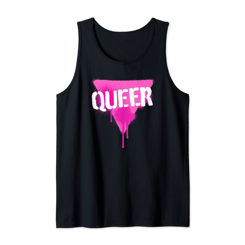 Queer Pink Triangle In Punk Spray Paint Stencil Style Font Tank Top