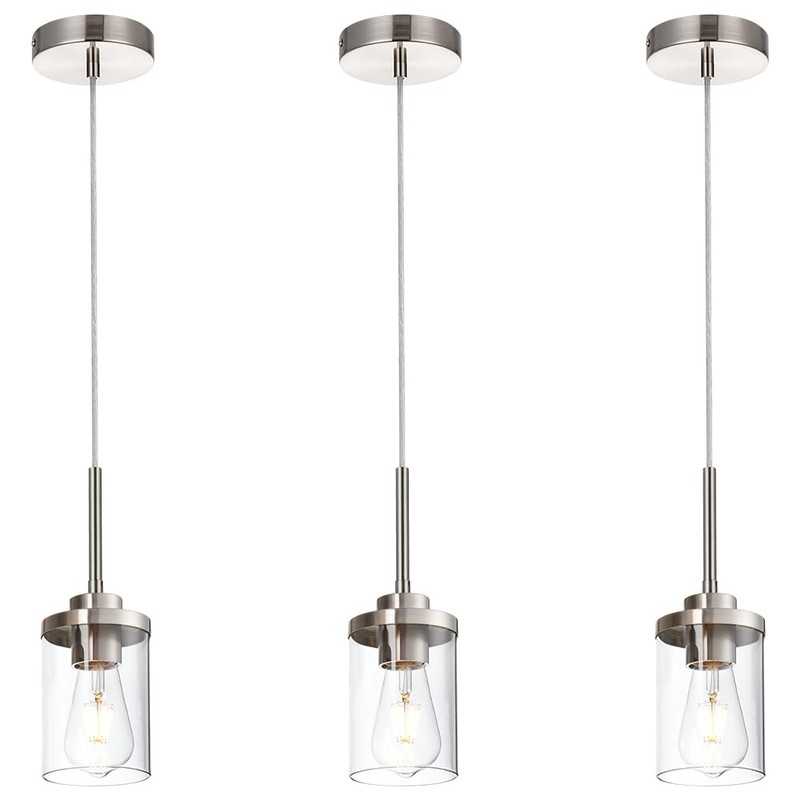 - Industrial Pendent Light: The Brushed Nickel pendant lighting with clear glass shades and completes the look with a hint of modern Industrial character. this ceiling pendant light fits perfectly with any style decor from modern Industrial to the farmhouse.The hanging ceiling light emits aesthetic and bright glow to light up the whole space, provide a timeless vintage touch and a clean modern aesthetic for your space.The whole space is bright, it will be the focus of home lighting fixtures.