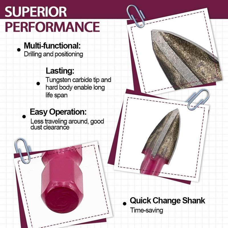 • Easy Operation : Sharp carbide bit saves your efforts and time. No worry of traveling around when drilling, good for accurate work. Spiral part is good for clearing dust and chips