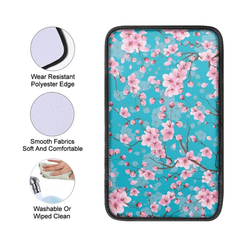 Quelytytrip Cherry Blossom Car Center Console Cover,Comfortable Car Armrest Cover Pad,Universal Fit for Sedan, Truck, SUV