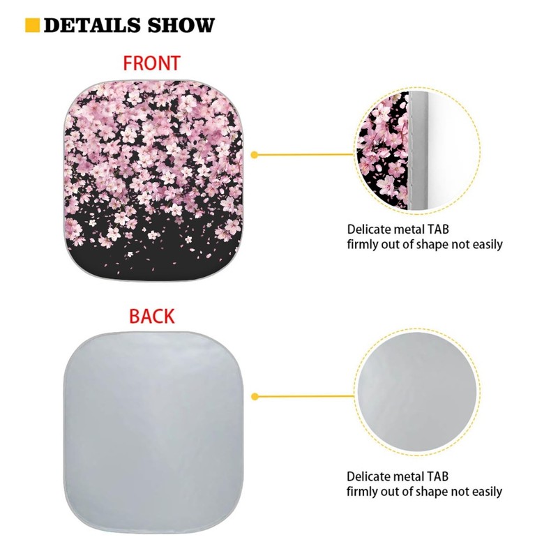 Quelytytrip Pink Cherry Blossom Car Sun Shade for Women,2PCs Front Window Windshield Sun Shade,Universal Fit,