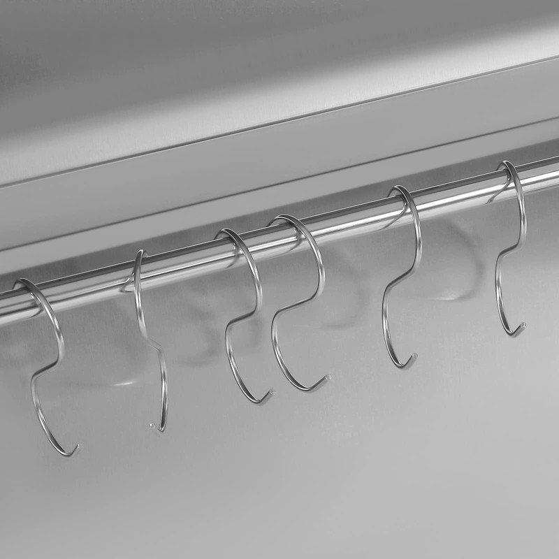 Practical Hooks and Cross Bar: The product is equipped with six S-shaped hooks and a cross bar, which provides more convenience for you to store spatulas, spoons, rags, etc.