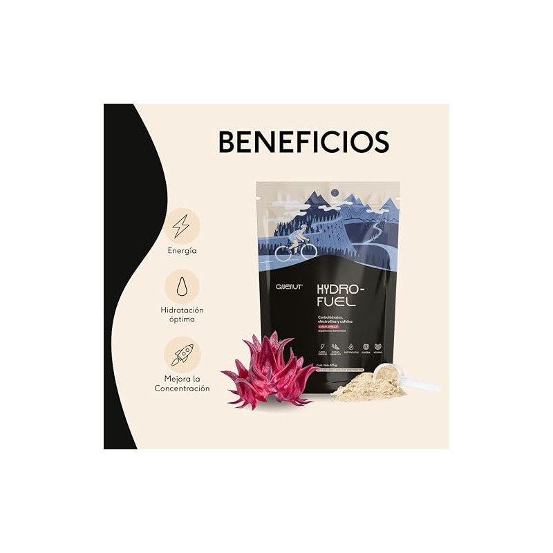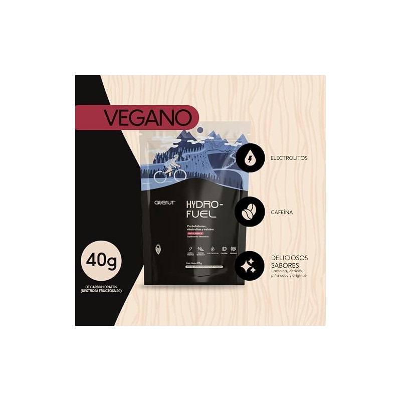 🌟 ⭐ QUENUT - Hydro-Fuel Carbohidratos Simples en Polvo, 675g (15 Porciones) - Electrolitos y Cafeína, Suplemento Alimenticio para Energía Instantánea (Jamaica) ⭐ 🌟