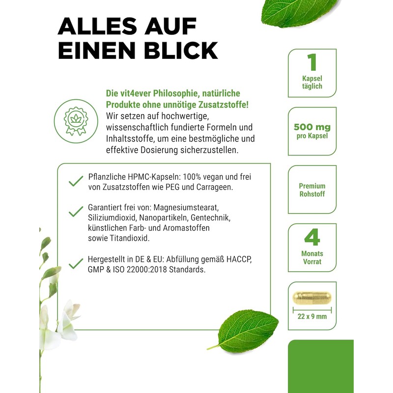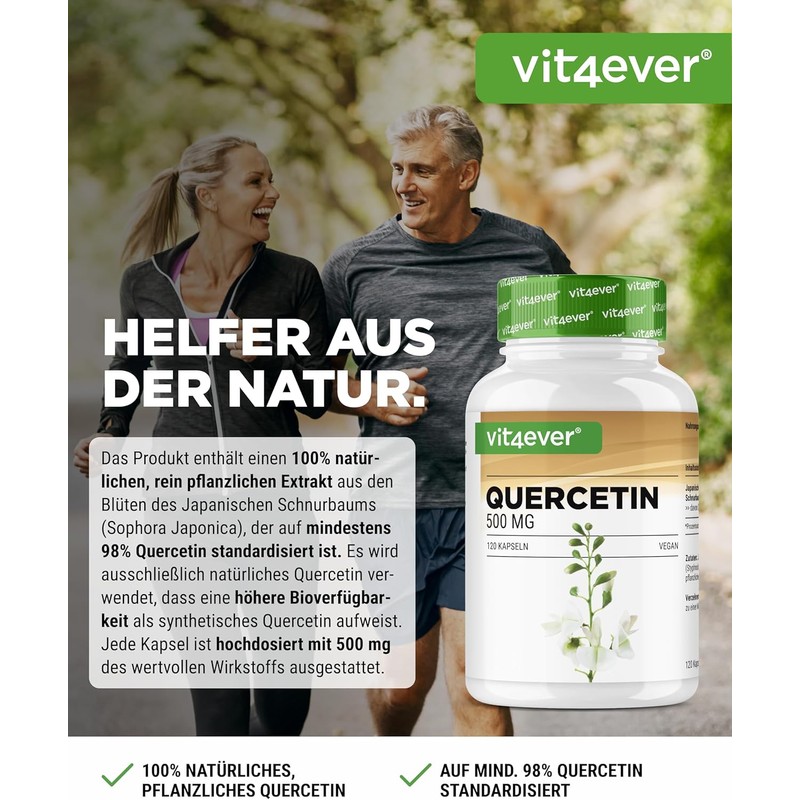 Support your body's natural defenses with Quercetin 500mg, a powerful antioxidant and flavonoid derived from the Japanese String Tree Flower Extract (Styphnolobium japonicum). Each bottle contains 120 vegan capsules, providing a 4-month supply with just one capsule per day.