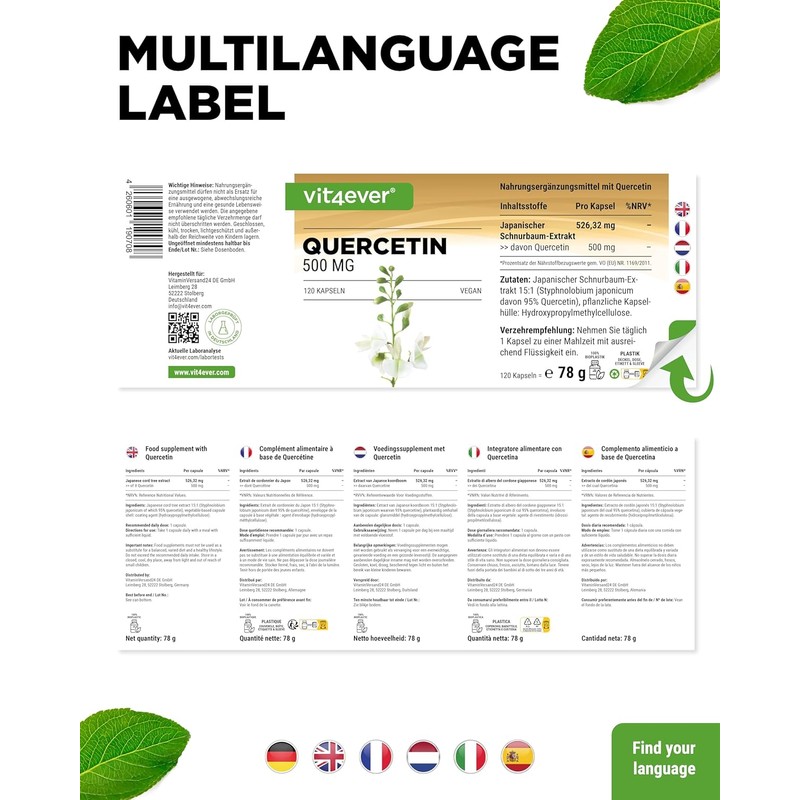 Quercetin 500mg – High-Potency Natural Antioxidant | 120 Vegan Capsules | 4-Month Supply | Japanese String Tree Extract
