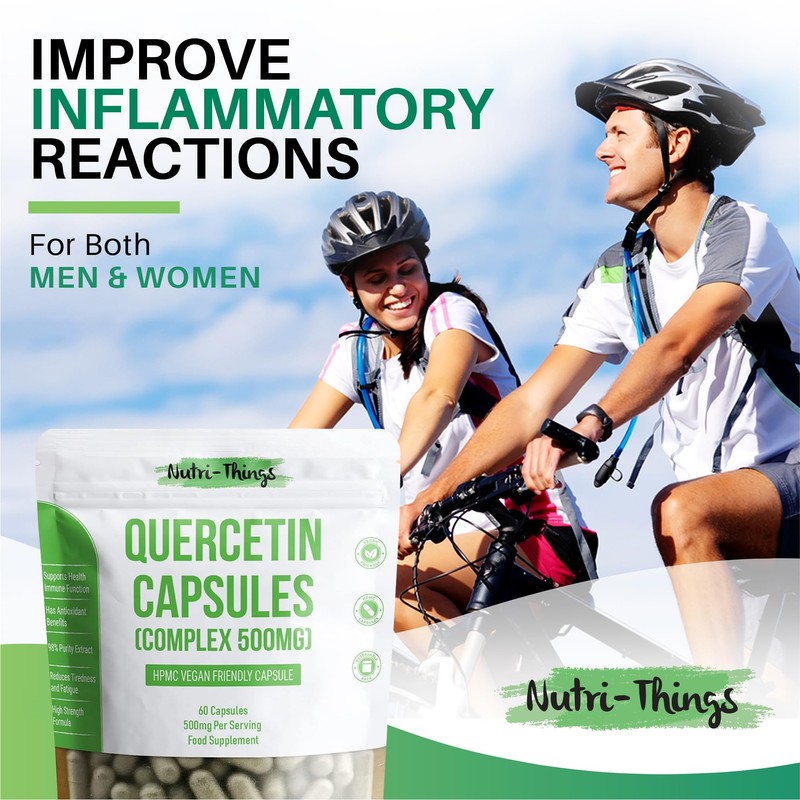 - IMPROVE INFLAMMATORY REACTIONS - Anti-inflammatory properties of Quercetin helps to lower the release of histamines, a compound that is released by cells in response to allergic and inflammatory reactions. Subsequently helping to lower pains and discomfort related to Inflammation such as joints, back pain, and many more health related issues.