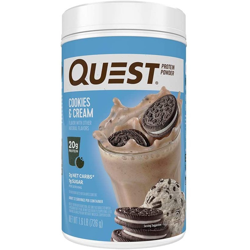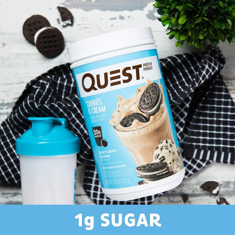 - SHAKE UP YOUR ROUTINE: Quest Cookies & Cream Protein Powder provides you with a delicious protein boost with 20g protein, 2g net carbs, and 1g of sugar per scoop
