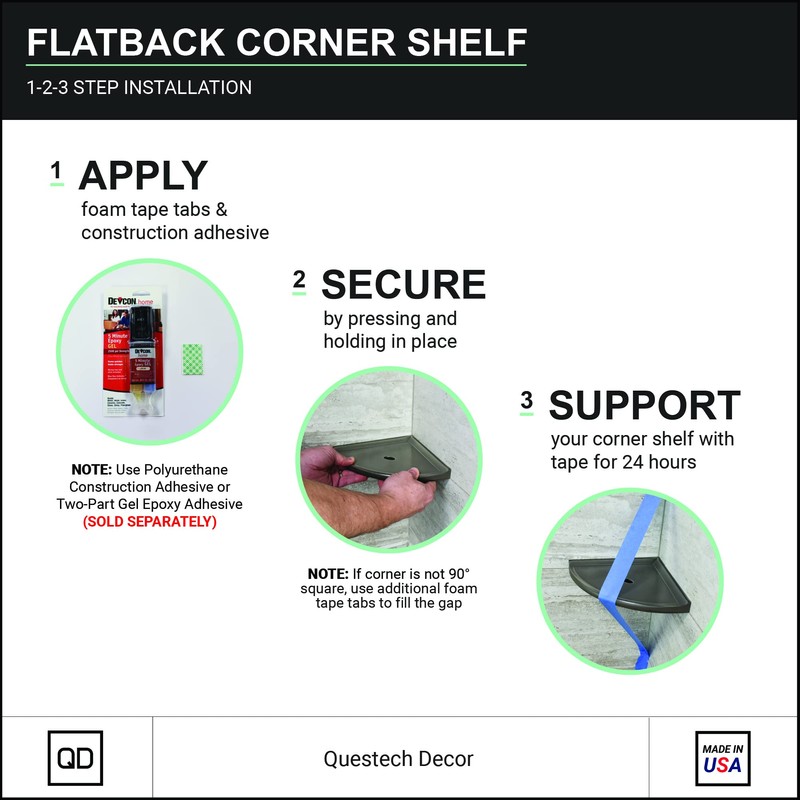 - MULTIPLE CONFIGURATIONS; Select from multiple size options and styles for matching shower caddies, corner shelves, floating shelves, soap dishes and footrests with coordinating colors and finishes to complete your bathroom remodel