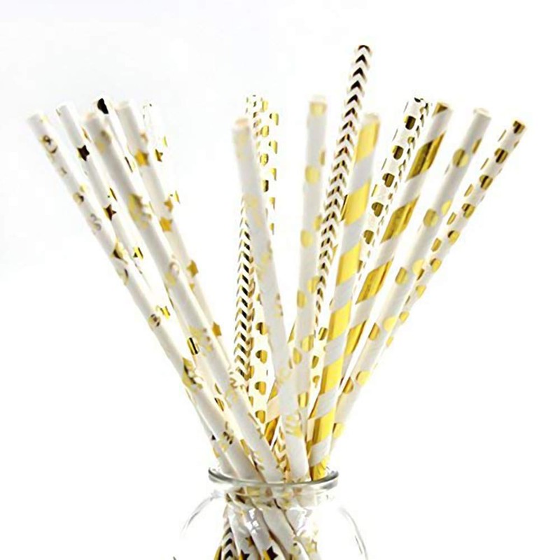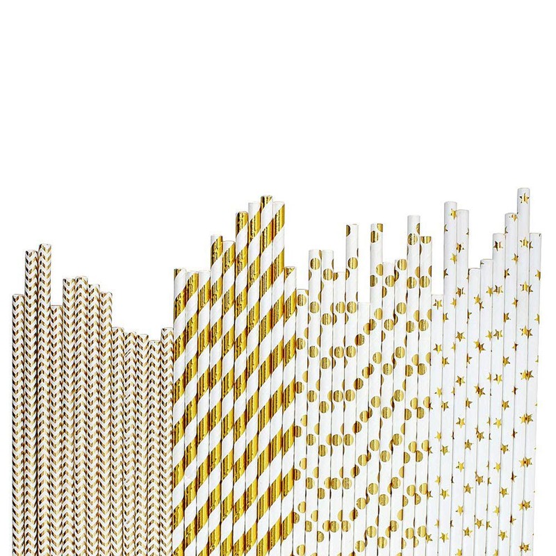 Queta Paper Straws, Gold Drinking Straws, Pack of 100, Reusable Straws, Ideal for Cocktail Decoration, Birthday Party, Wedding and Occasions