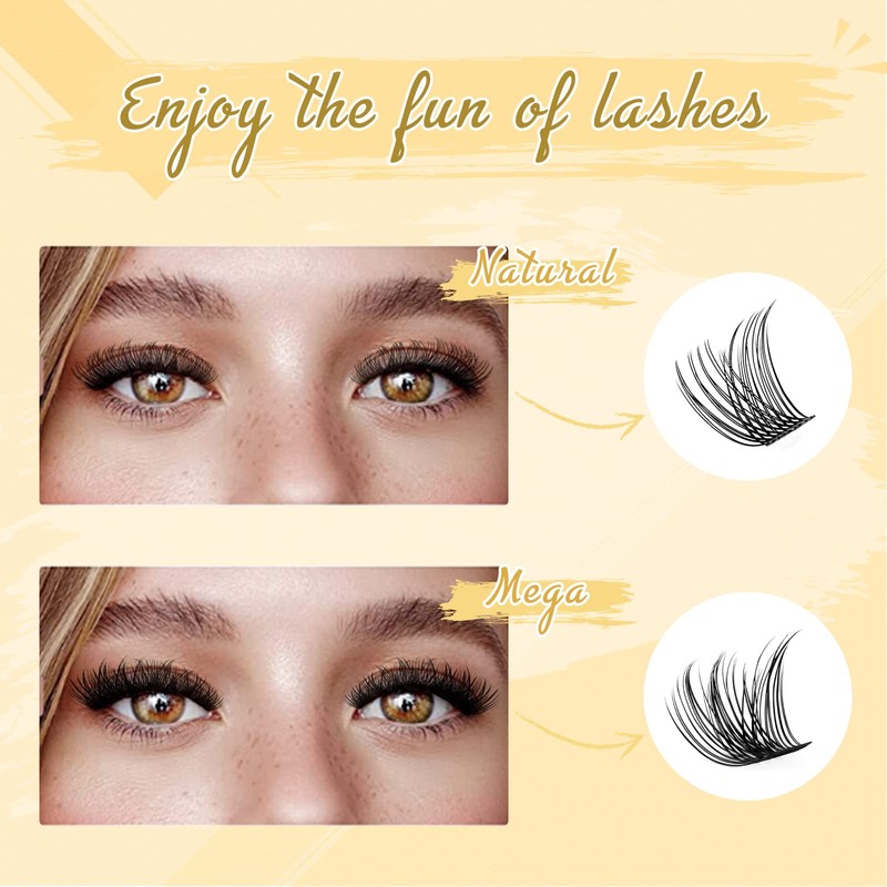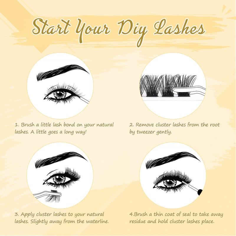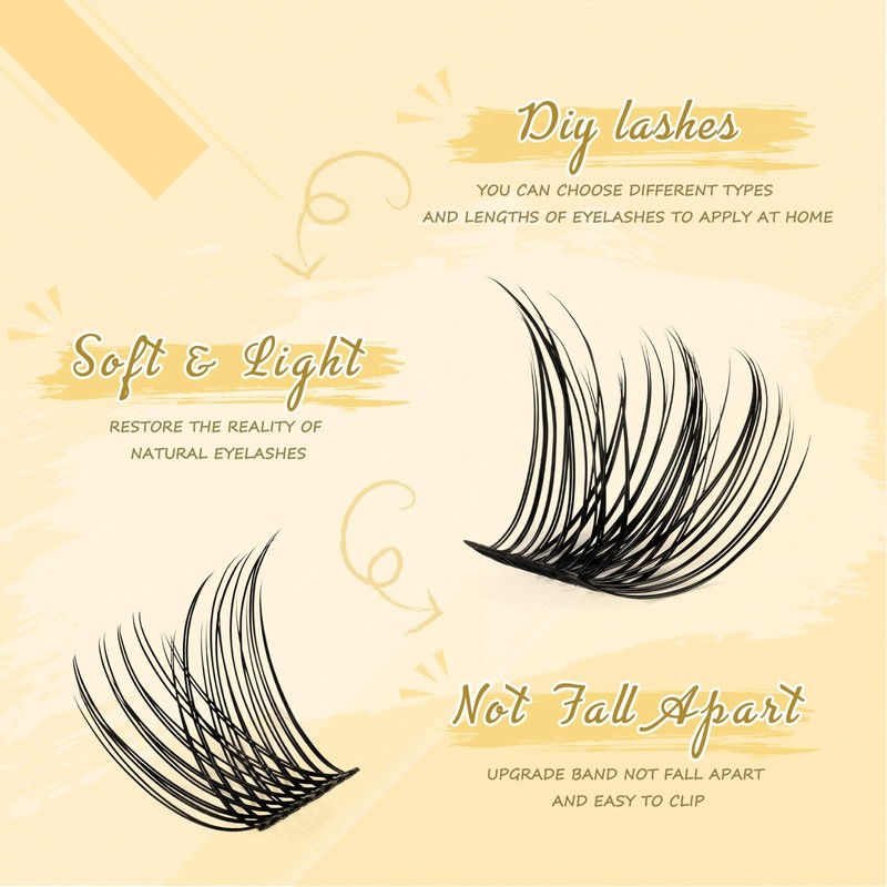 • High quality and does not fall apart: The band of the cluster eyelashes uses a newer and stronger double thread interweaving technology, the bands are thin but do not fall apart. The trapezoidal base design leaves space at the root of the eyelash clusters, you can easily take out the eyelash clusters with tweezers and don't have to worry about the band breaking off.