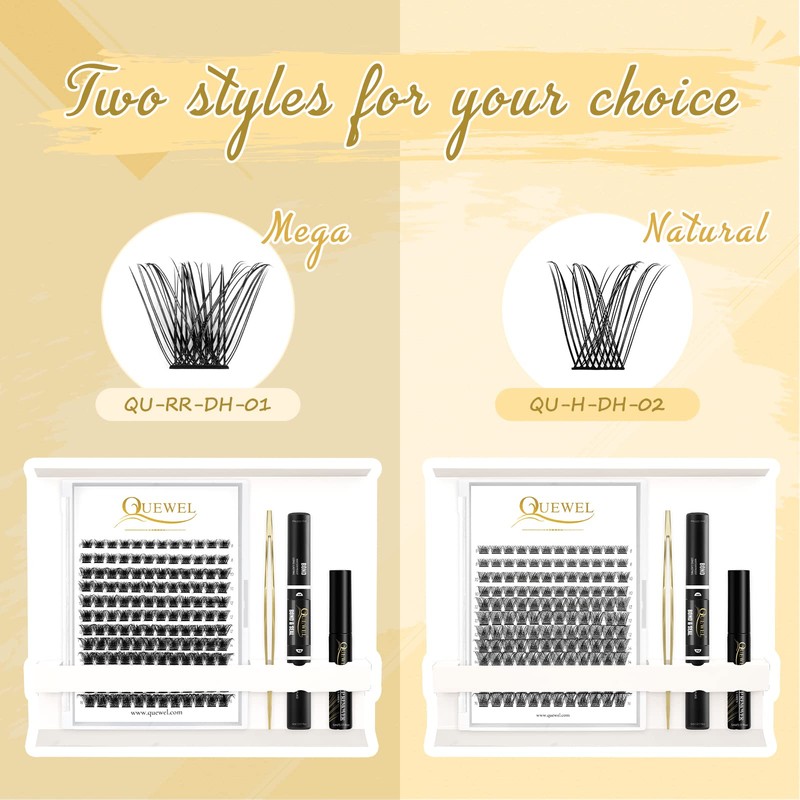 QUEWEL DIY Eyelash Extensions, Soft and Comfortable Cluster Lashes with Fine Band, Individual Eyelashes Easy for Beginners at Home (BYR01)