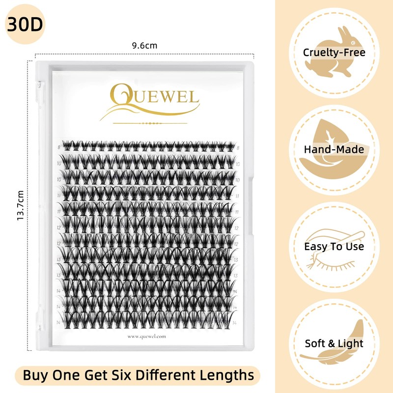 Vegan, cruelty-free, QUEWEL eyelash individual cluster lashes are 100% handmade.