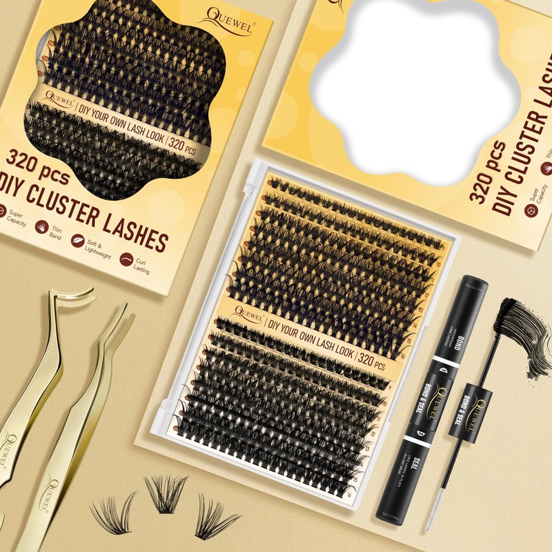 QUEWEL Lash Clusters 320Pcs Cluster Lashes 35D+45D C Curl Lash Cluster Eyelas...