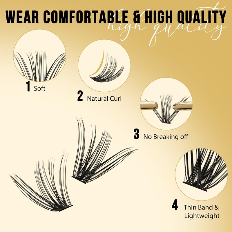 • 【Soft & Natural, More Realistic】Quality material, to make the cluster eyelash extensions More realistic like your own lashes, soft and lightweight, 100% handmade and cruelty-free. The stable curl with good retention completely blends with your real eyelashes, which makes the lash cluster looks natural when you wear it, showing a More confident self.