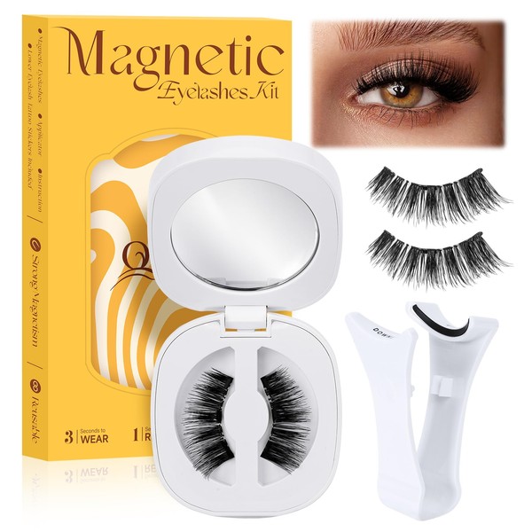 QUEWEL Magnetic Eyelashes, Reusable Magnetic Lashes With Applicator No Glue Needed Eyelashes without Eyeline Natural Look Lash Clusters (G-YC-E01)