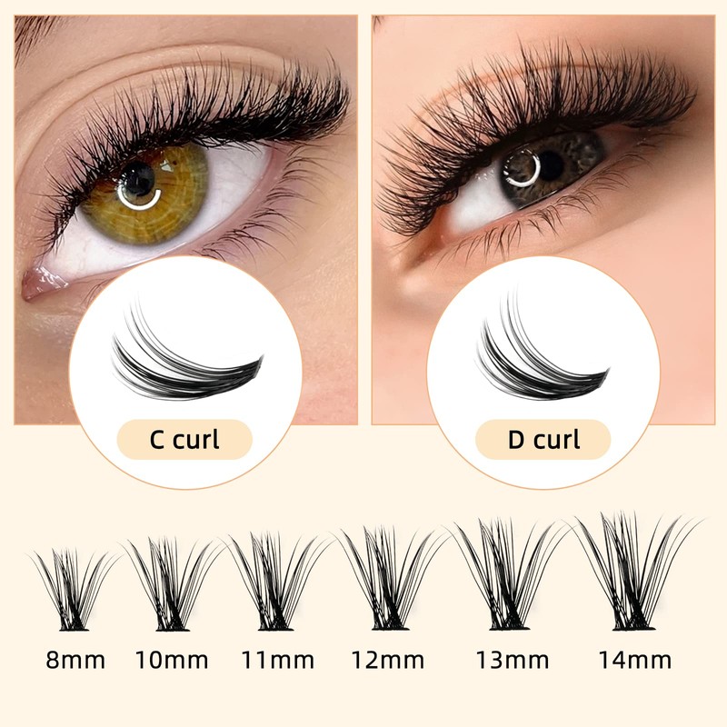 - Get Charming Eyes: The cluster eyelash extensions are matte black can better match your own lashes. C curl and d curl lash extensions clusters with mixed length can help you easily get natural or dramatic look.Besides, the eyelash cluster is easy to be removed by eye makeup remover