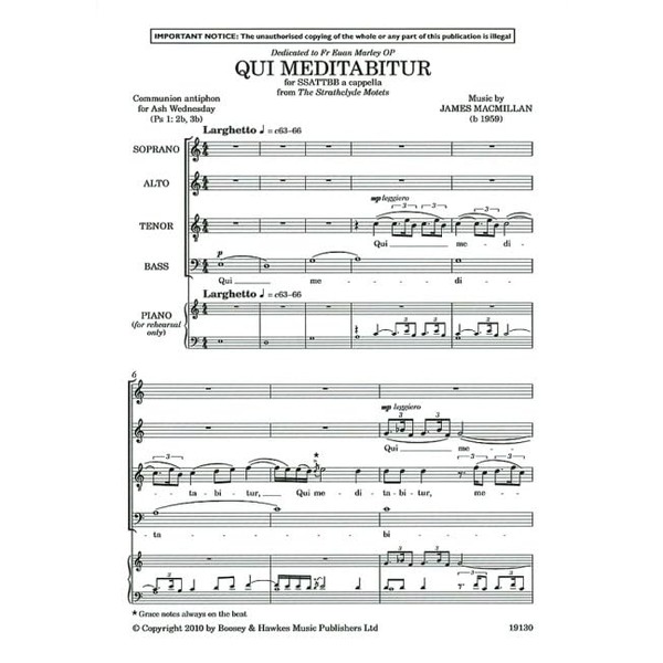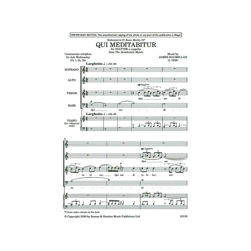 Qui meditabitur: extrait de "The Strathclyde Motets". mixed choir (SSATTBB) a cappella. Partition de chœur.