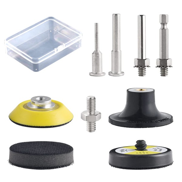 - ✔9 PACK VARIETY KIT: Contains 9 essential pieces including 2 quick change disc pads with multiple shank types, PU foam adapters, and an M6 external thread connector for universal adaptability.