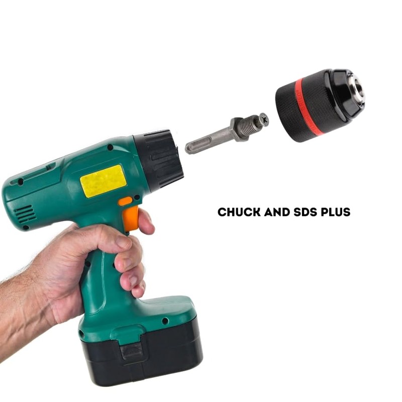 - VERSATILE CONVERSION: This adaptor kit allows quick conversion between 1/4" hex shank, SDS plus, and 1/2" square impact drill chucks for increased flexibility on job sites.