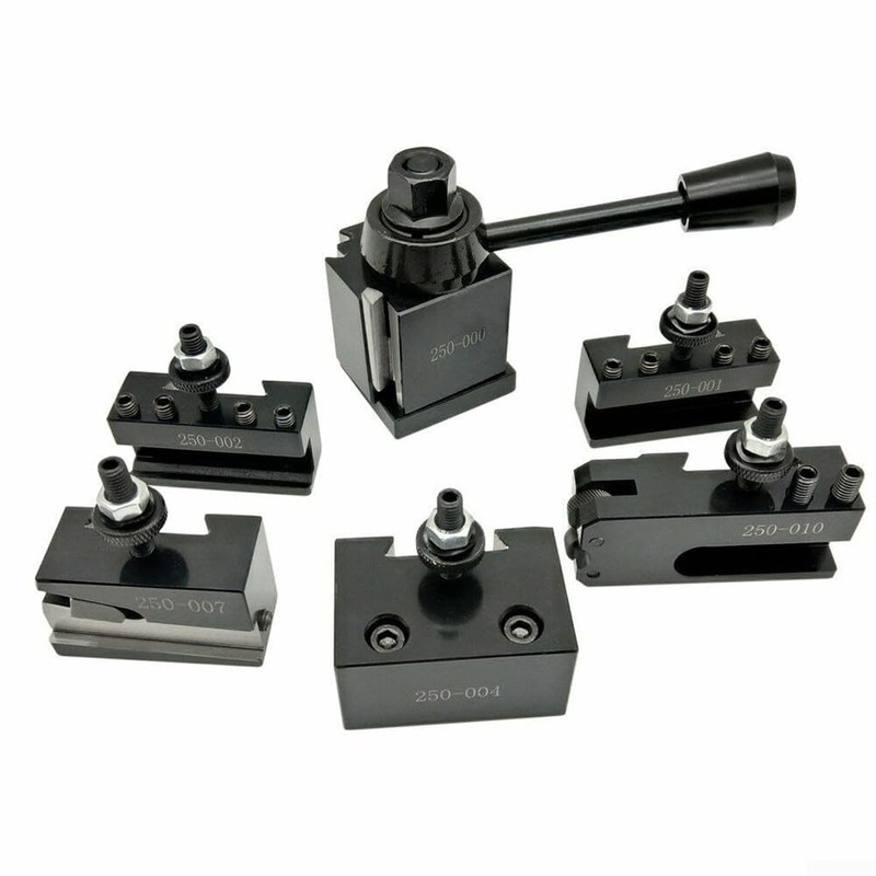 - [VERSATILE TOOL HOLDER KIT]: Designed for 6-9" lathe swing, this kit includes multiple holders (250-000, 250-001, 250-002, 250-004, 250-007, 250-010) to accommodate various tools up to 1/2" for turning, boring, drilling, and knurling operations.