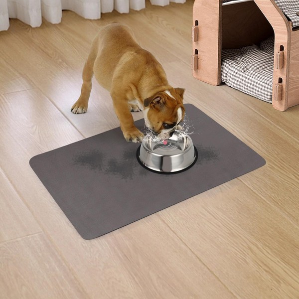 - WIDE APPLICATION: This absorbent pet mat for food and water bowl is about 19x12 inches in size, ideal for small dogs. Of course, it can also be used for pet drinking bowls, automatic feeders, raised feeders and more, making the drinking time enjoyable for your dog.