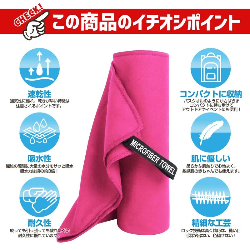 - Super Absorbent, Quick Drying, Antibacterial: Even though it is thin, it has excellent water absorbency, and is made with fluffy microfiber fiber exclusively for towels. The ultra-fine fiber is silky to the touch. It has outstanding absorbency, is light and feels good on the skin and has excellent durability. It has been treated to prevent mold and mildew, so it is safe to absorb sweat, and prevents bacteria from growing in a wet towel