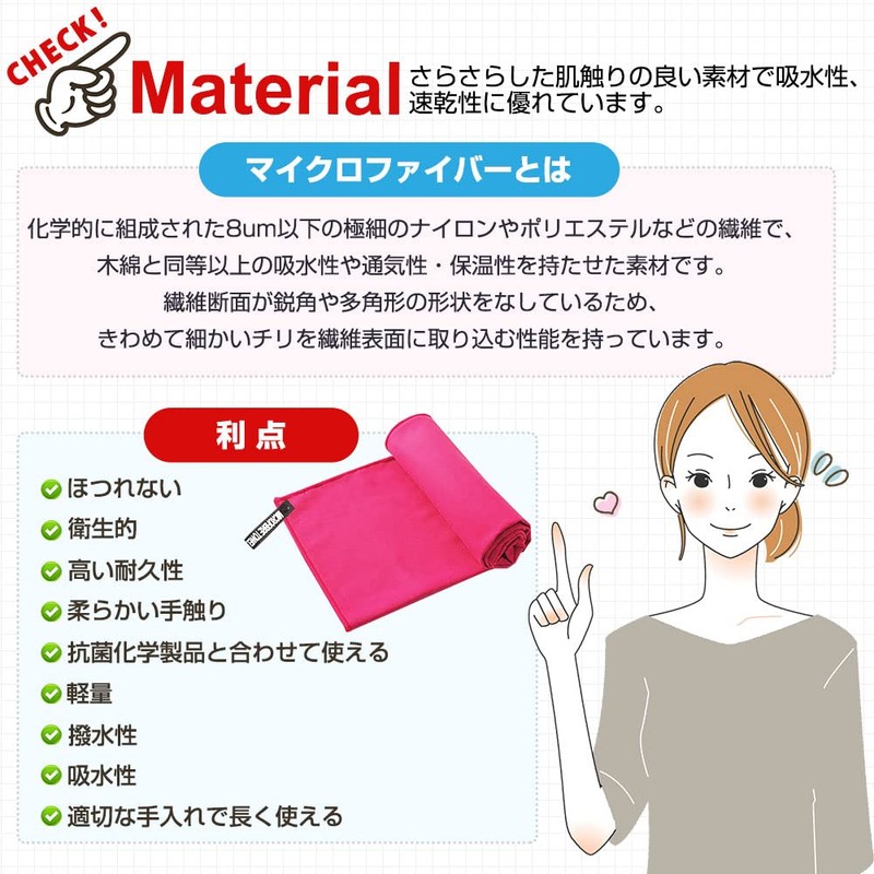 - Super Absorbent, Quick Drying, Antibacterial: Even though it is thin, it has excellent water absorbency, and is made with fluffy microfiber fiber exclusively for towels. The ultra-fine fiber is silky to the touch. It has outstanding absorbency, is light and feels good on the skin and has excellent durability. It has been treated to prevent mold and mildew, so it is safe to absorb sweat, and prevents bacteria from growing in a wet towel