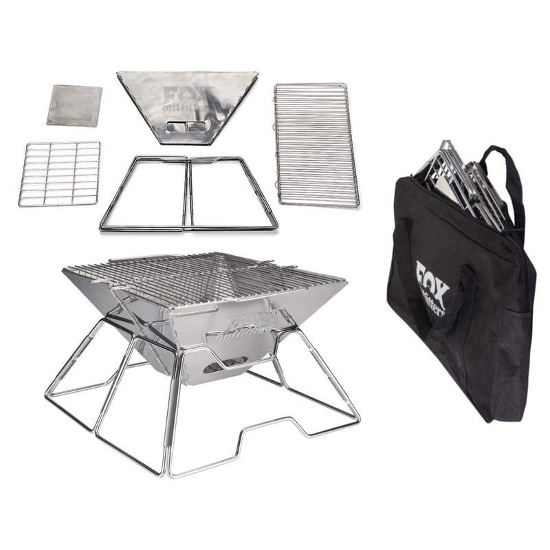 Quick Grill Medium: Original Folding Charcoal BBQ Grill Made from Stainless Steel/Carrying Bag for Backpacking Included /
