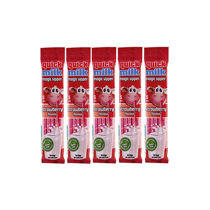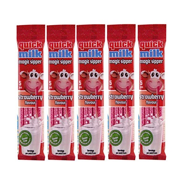 Quick Milk Strawberry 5 Bags of 5 Straws Magic Milk Drinking Straws