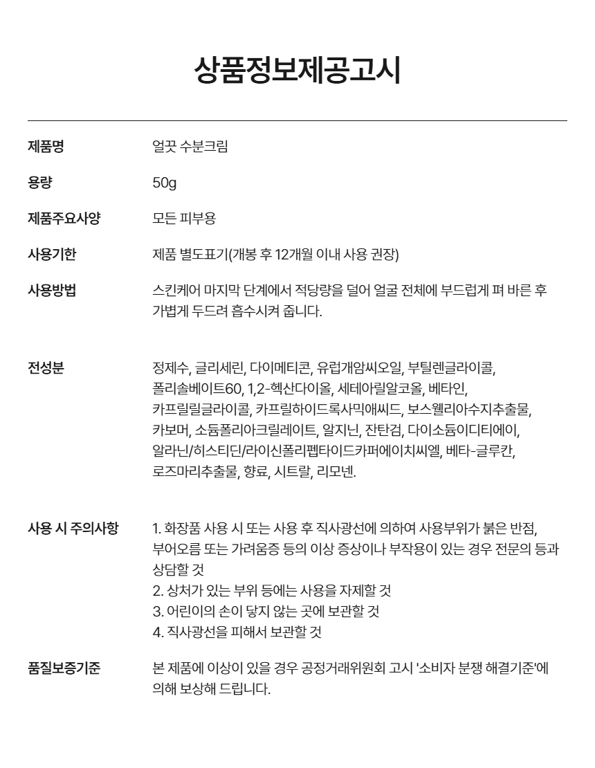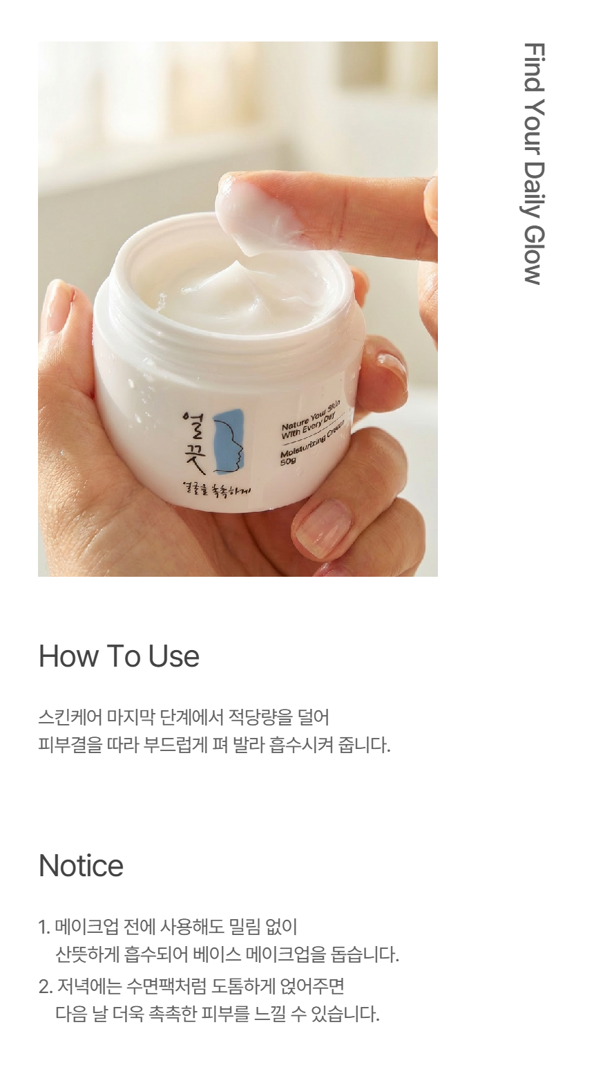 얼끗 수분크림은 피부에 부담을 주지 않는 저자극 보습 크림으로 건조한 피부에 편안한 촉촉함을 채워줘요.