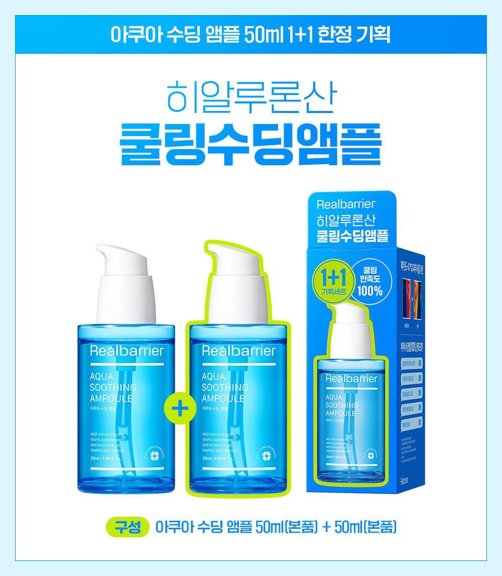 [Quick Moisturizing / Rapid Hydration] Real Barrier Aqua Soothing Ampoule 50ml 1+1 Promotion / 리얼베리어 아쿠아 수딩 앰플 50ml 1+1 기획
