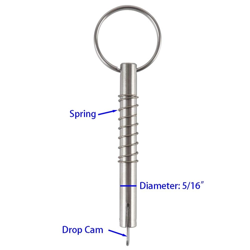 Quick Release Pin 8mm 5/16" w/ Drop Cam & Spring, Boat Canopy Pins, Full 316 Stainless Steel, Bimini Top Pin, Marine Hardware, All Parts are Made of 316 Stainless Steel