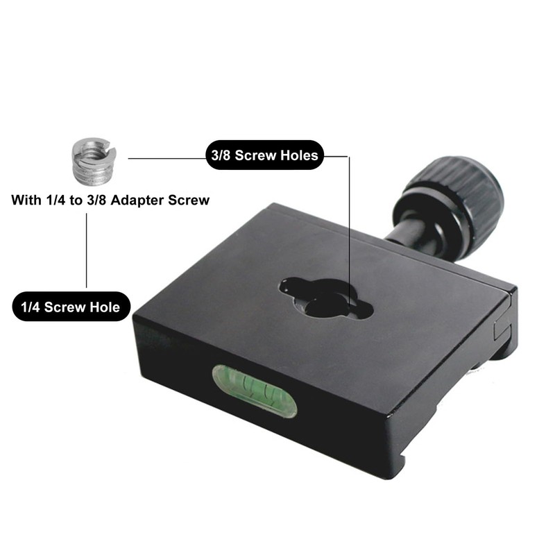 Quick Release Plate Clamp, 60mm Arca Swiss Quick Release Plate, Aluminum QR Clamp Adapter Set with 3/8in &1/4in Thread, Built in Bubble Level for DSLR Camera Tripod