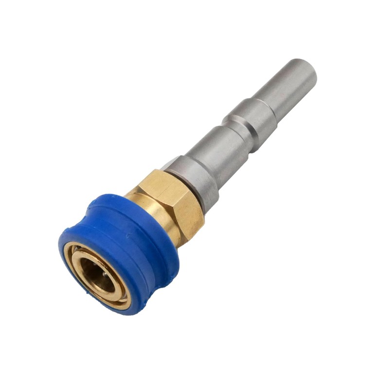 Can be inserted into the original pressure gun of your pressure washer, greatly increasing the possibilities of using optional accessories. The quick connectors are designed for an operating pressure of 250 bar and a maximum temperature of 60°C. Allows the use of optional accessories and quick, tool-free replacement. Whether extensions, nozzles, foam lances, sand blasters, surface cleaner or special accessories, this connection allows you to create completely new possibilities. Box contents: 1 x quick connector to high-pressure gun adapter