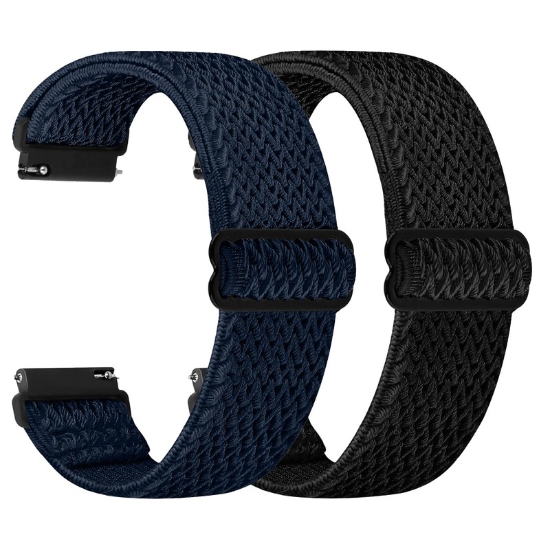 Quick Release Watch Band Compatible with 20mm 22mm Watch Bands 2 PCS Adjustable Elastic Nylon Watch Straps Replacement Wristband for Men Women (Black+Blue, 22mm)