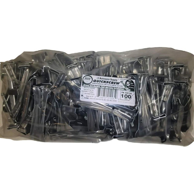 Quick Screw 5" 100 Pack Premium Hidden Rain Gutter Bracket Hook Hangers with Screw Clip Style