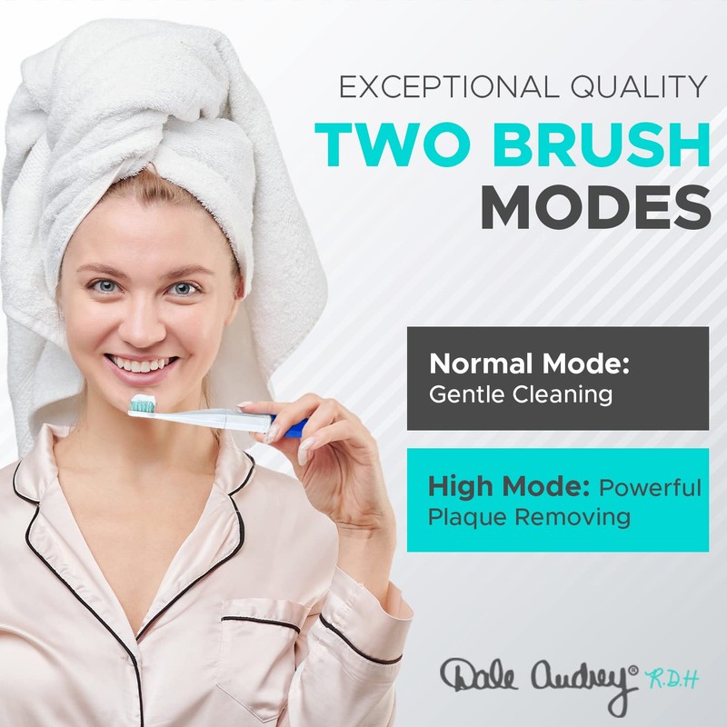 - PATENTED SONIC TECHNOLOGY-DYNAMIC CLEANING ACTION: Specially engineered with patented sonic technology, Dale Audrey’s Quick Sonic toothbrush has a high and low speed, light weight and waterproof. Brighten your smile at home or travel!