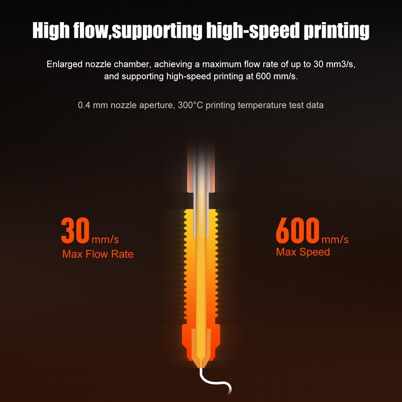 - High-Flow Printing: Achieve a maximum flow rate of up to 30 mm³/s, and support high-speed printing at 600 mm/s;