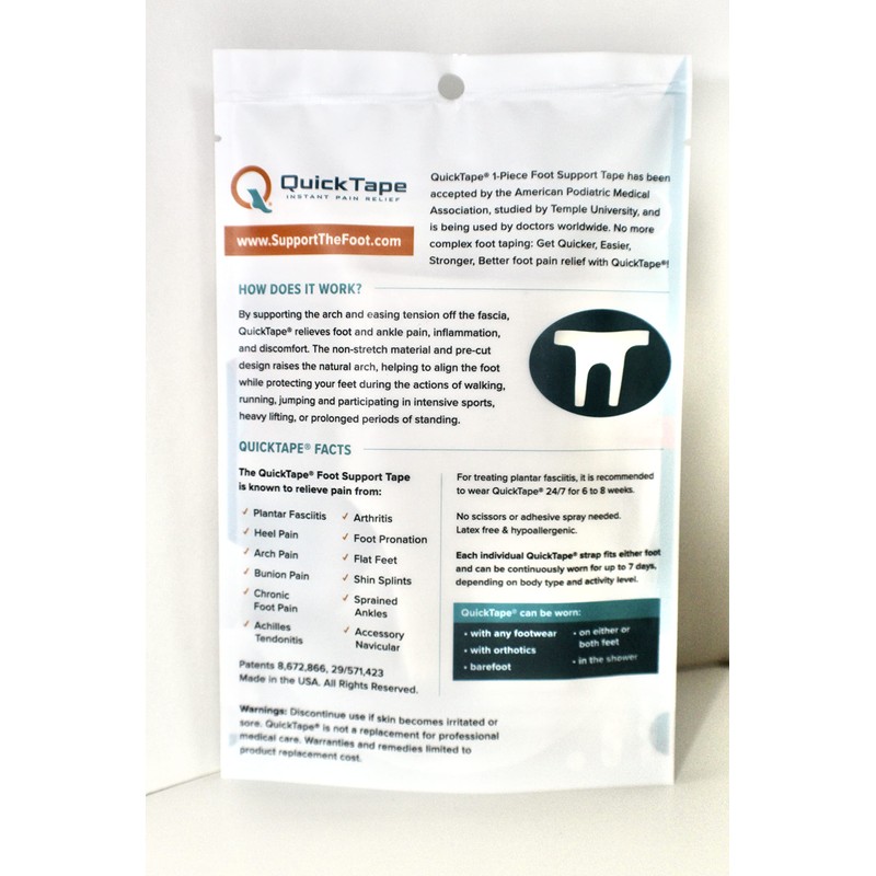 Quick Tape™ Plantar Fasciitis Support Brace 1-Piece Foot Tape: (Standard-Women's 5 to Men's 11)
