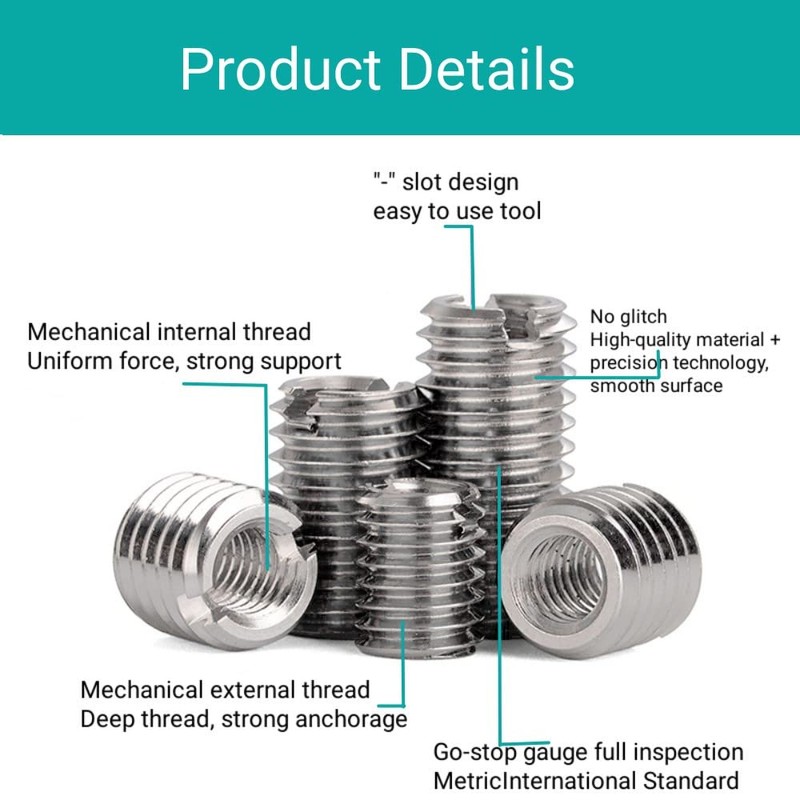 Case: For example, if the M8 thread is slippery, you want to continue using the M8 thread after restoration, use this repair nut to expand the M8 thread to the M10 thread first, and then use the M8-M10-12 length reducer to change it back to M8. As the material of this reducing diameter is stainless steel, the M8 thread becomes more firm.