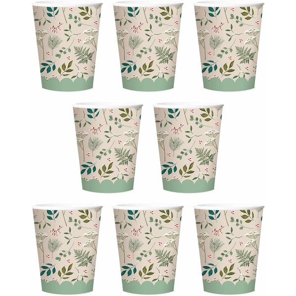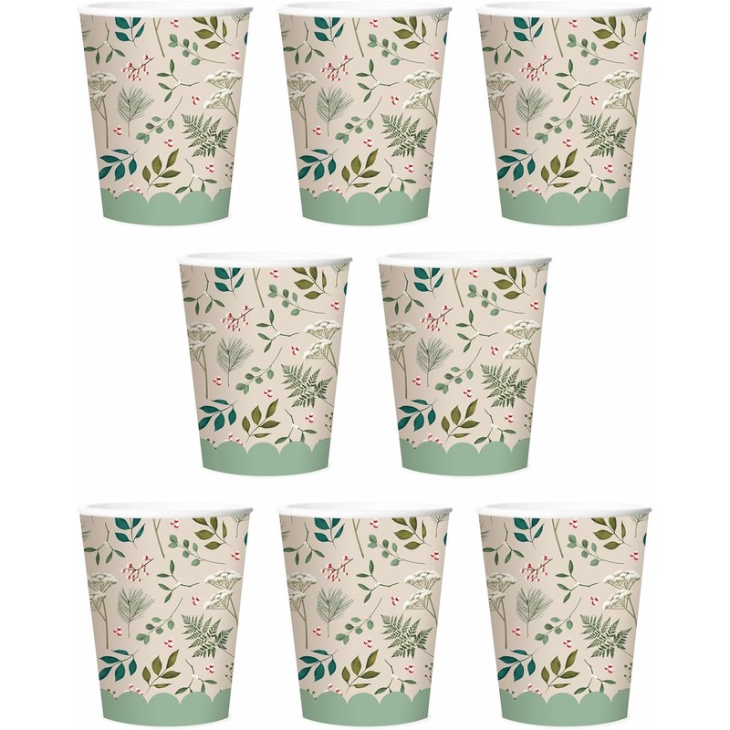 Quickdraw 16 x Christmas Paper Cups Traditional Holly Design Recyclable Disposable Tableware Party Supplies