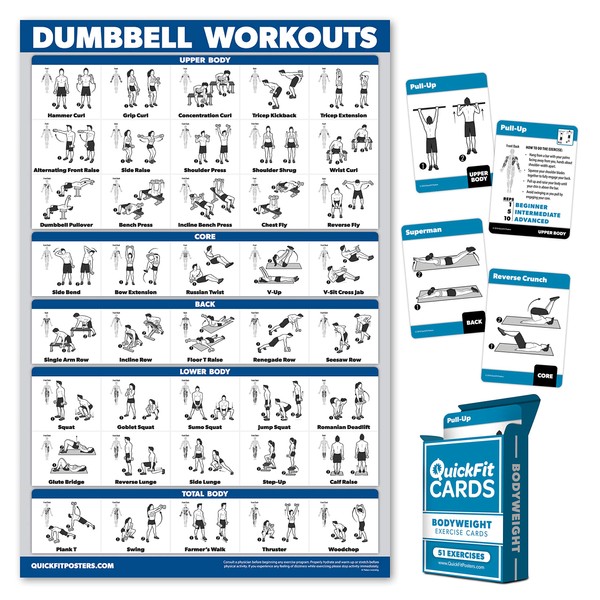 Quickfit 2 Pack - Dumbbell Workout Poster & Bodyweight Exercise Card Set