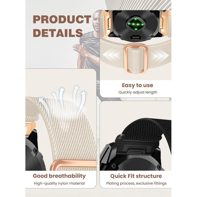 Quickfit-26MM-Nylon Watch Band Compatible with Garmin Fenix 8 AMOLED-51mm/Fenix 7X/Fenix 6X pro/Fenix 6X Sapphire/Fenix 5X /Fenix 5X Plus/Fenix 3, Enduro/Tactix Delta/Descent Mk1/Mk2/Mk2i(Starlight