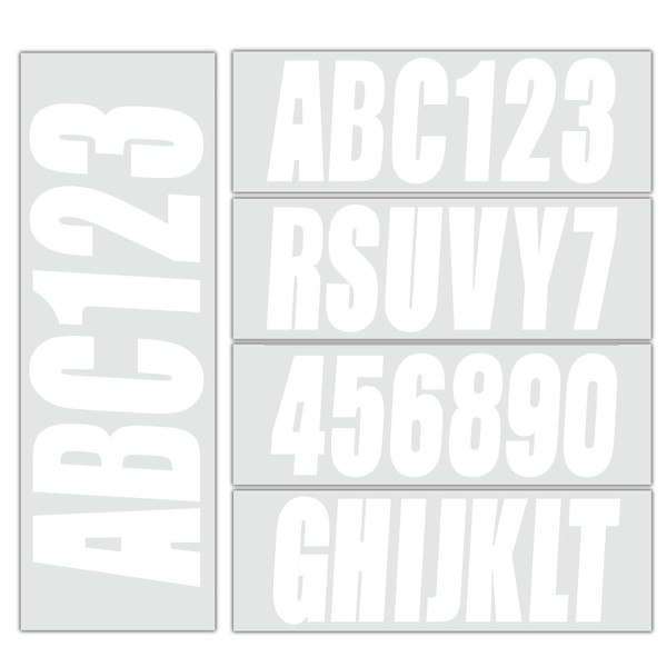 QuickMariner 4 Sets 3" Solid White Alpha-Numeric Registration Numbers and Letters Sticker Decal Kits for Boats & Personal Watercraft
