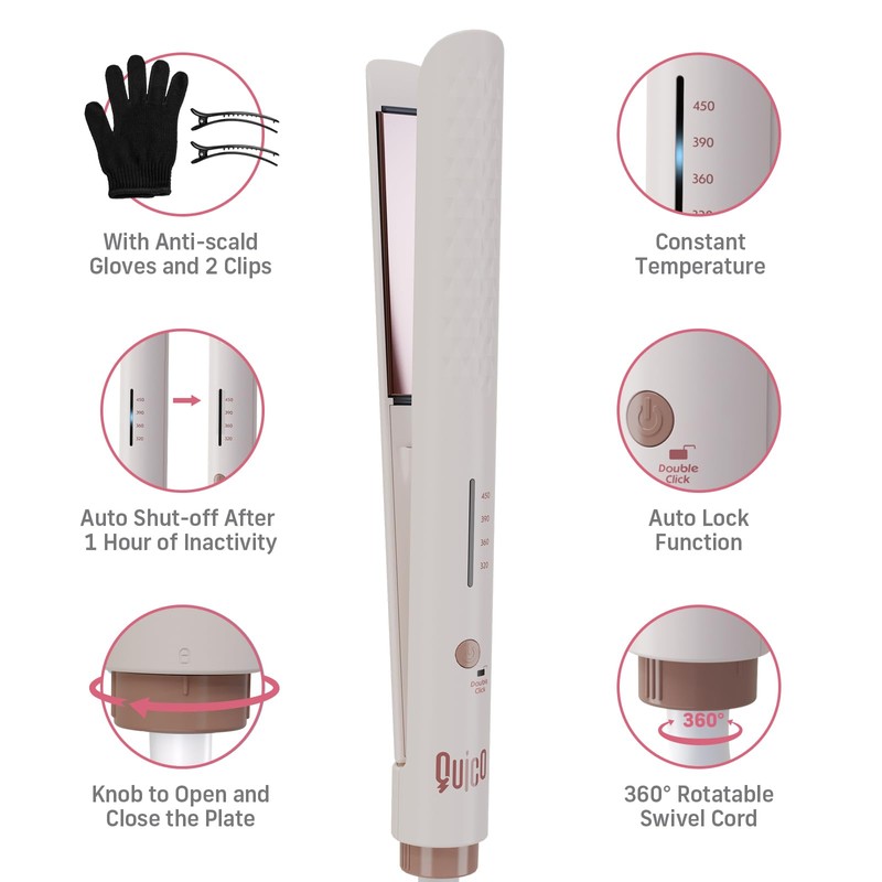 Perfect for gifting, it comes with a one-year warranty. Discover the joy of effortless styling while keeping your hair healthy and stylish with Quico flat iron.