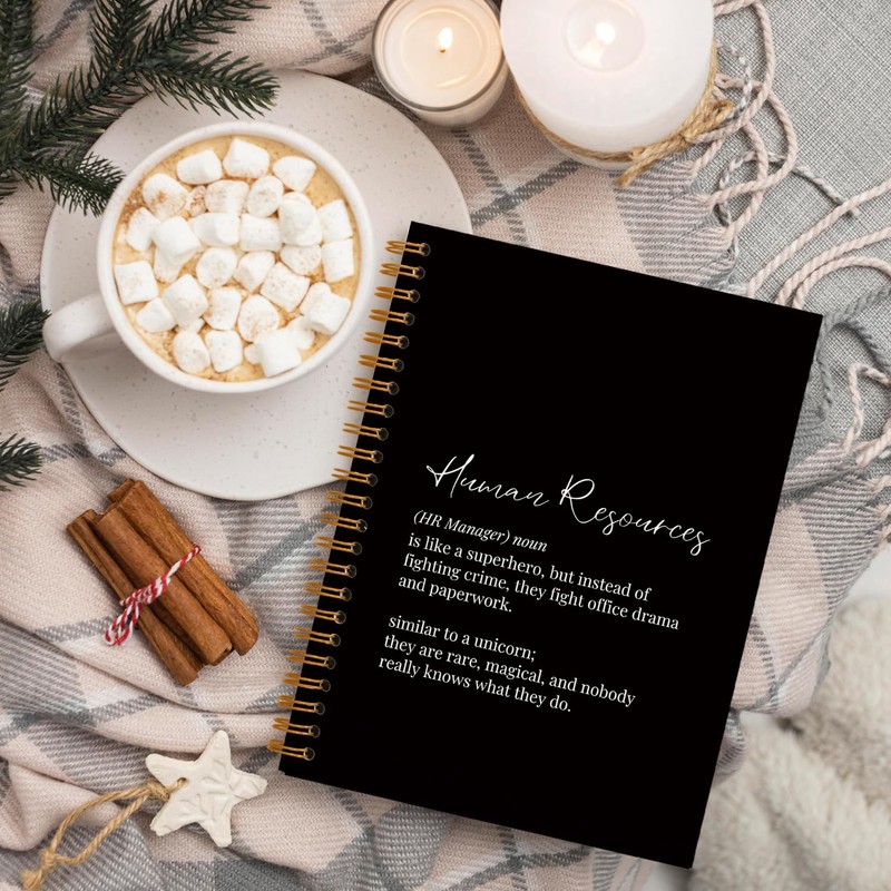 QUICQOD HR Gifts Notebook,Human Resourses Definition Journals,HR Appreciation Gift,Thank You Gift for HR Manager Director,Retirement Gift for Coworker Friend,Black Hardcover Spiral Notebook 5.5x8.3